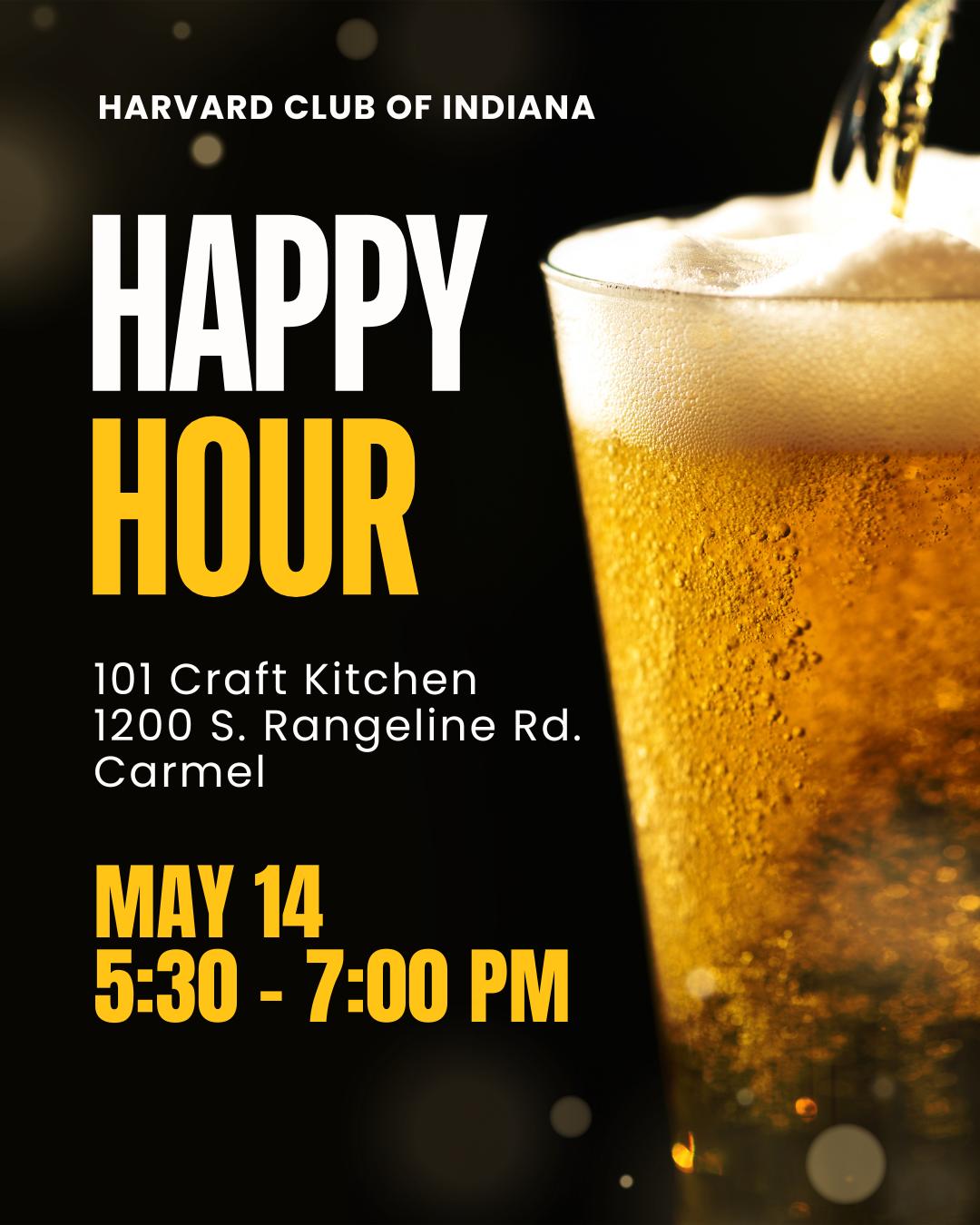 Join fellow alumni for an evening of informal networking and community building at our upcoming Harvard Club of Indiana happy hour. Whether you are looking to reconnect with old friends or expand your local professional circle, this gathering offers a relaxed setting to share experiences and strengthen our alumni network. We look forward to seeing you on May 14 from 5:30 to 7:00 PM at 101 Craft Kitchen in Carmel.
